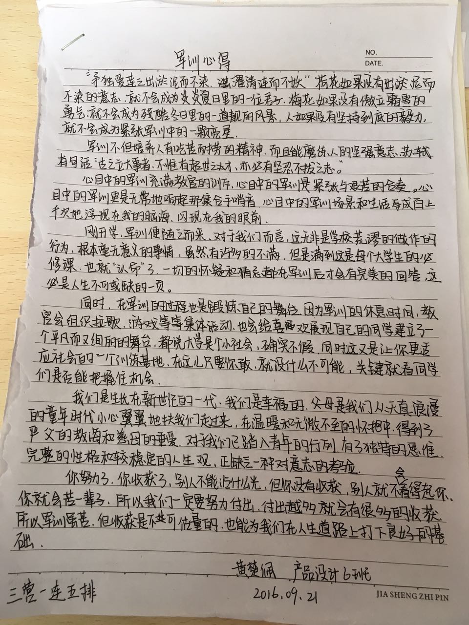 *2016级军训心得——16级产设6班 黄楚佩 2016/09/22