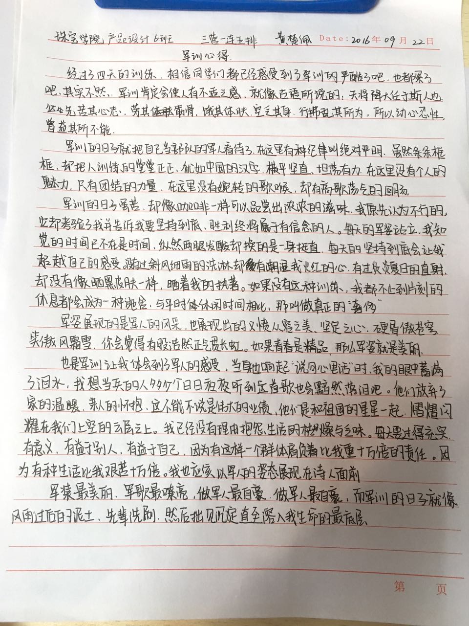 *2016级军训心得——16级产设6班 黄楚佩(2) 2016/09/23