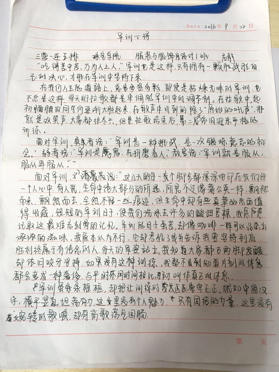 *2016级军训心得——16级服设1班 庄静 2016/09/23