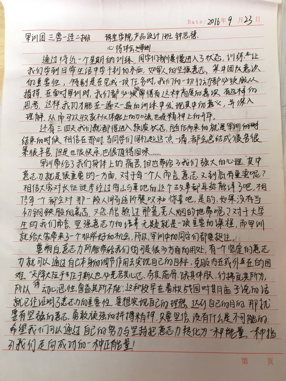 *2016级军训心得——16级产设1班 钟思慧(2) 2016/09/25