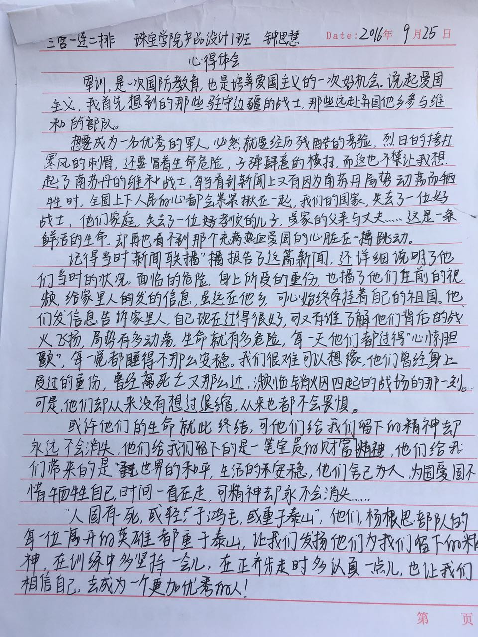*2016级军训心得——16级产设1班 钟思慧(3) 2016/09/26
