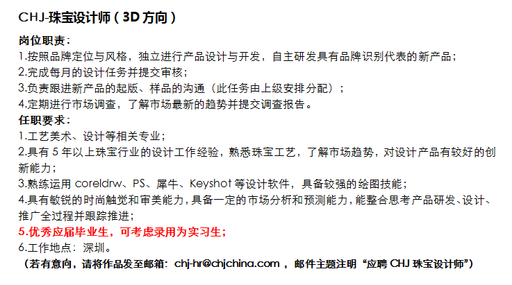 潮宏基实业,深圳设计部,急招3D珠宝设计师,有意向可留意。