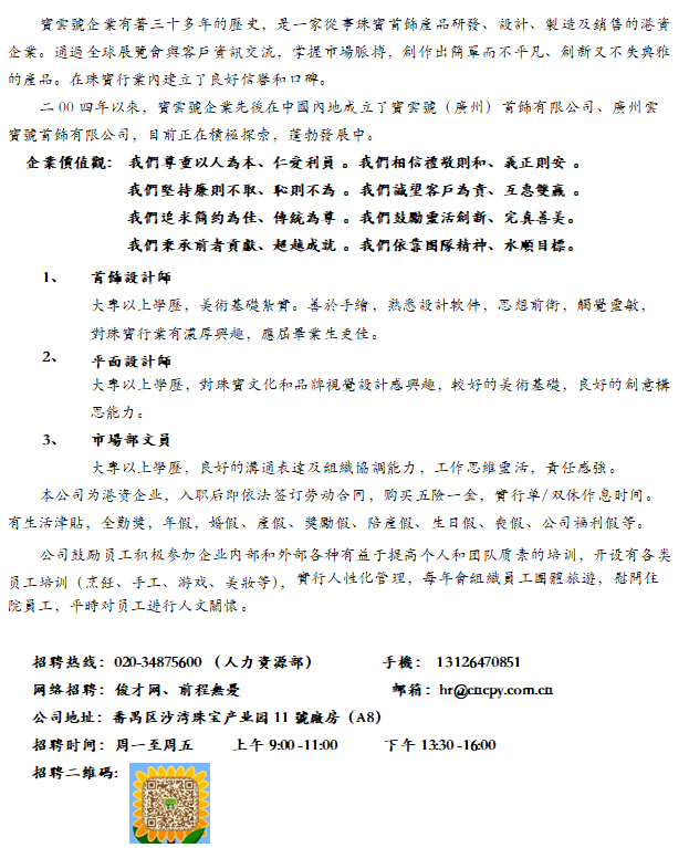广州云宝号首饰招聘首饰设计师