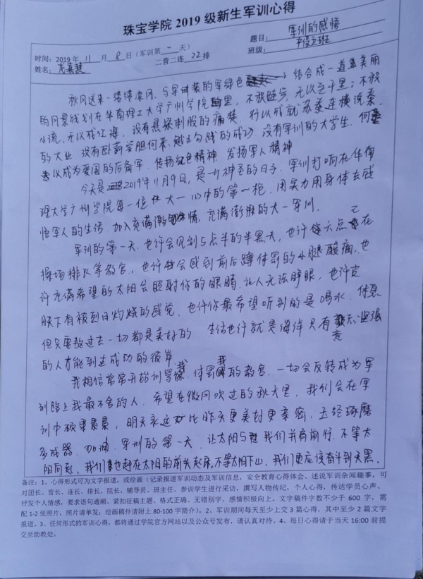 *2019级新生军训心得——19级产品设计5班龙嘉慧(二) 2019/11/08