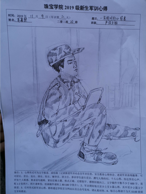 *2019级新生军训心得——19级产品设计5班龙嘉慧(速写) 2019/11/09