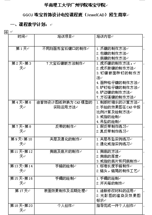 完成全部课程学员,考核成绩合格,华南理工大学广州学院suncitygroup太阳新城颁发“GGCU电脑首饰设计师”培训证书。