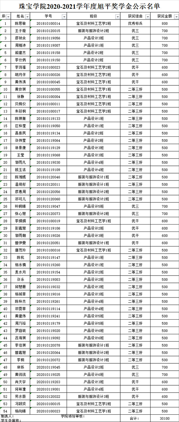 关于公示获得2021年度旭平奖学金、ZEGL品牌奖学金、梦金园奖学金初审名单的通知