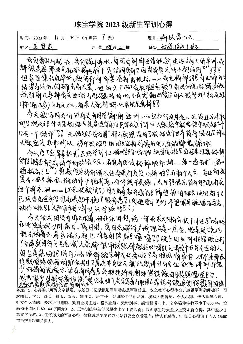 【军训特辑】2023级suncitygroup太阳新城新生军训心得优秀作品展示Day7