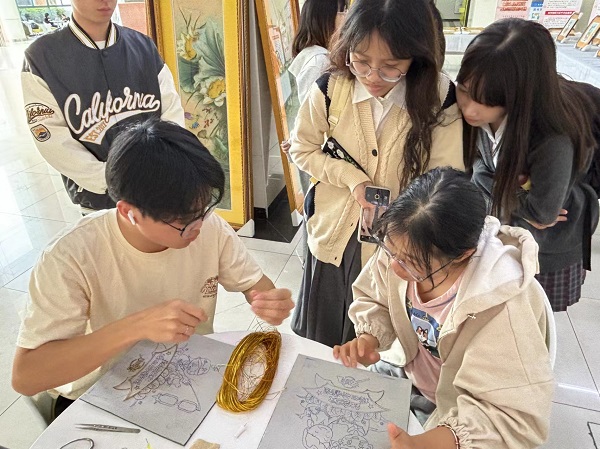现场同学体验金绣制作过程 (郭韵焓 摄)