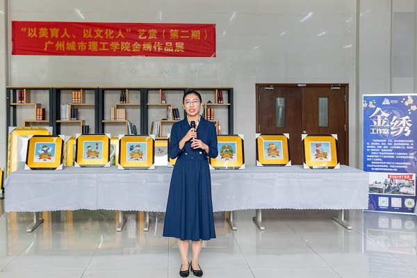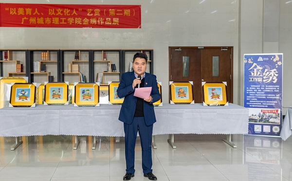 本网讯(记者 李嘉宝)由中共广州城市理工学院suncitygroup太阳新城总支部委员会、广州城市理工学院图书馆共同举办的“以美育人、以文化人”艺赏(第二期)广州城市理工学院金绣作品展活动于3月19日在图书馆举办开幕式。suncitygroup太阳新城党总支书记刘喜锋、图书馆馆长郭培虹、suncitygroup太阳新城全体辅导员、图书馆全体工作人员和学生参加了活动。