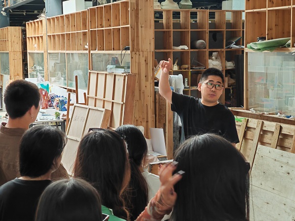 于名涛带领学生参观设计学院工作室(龚帅 供)