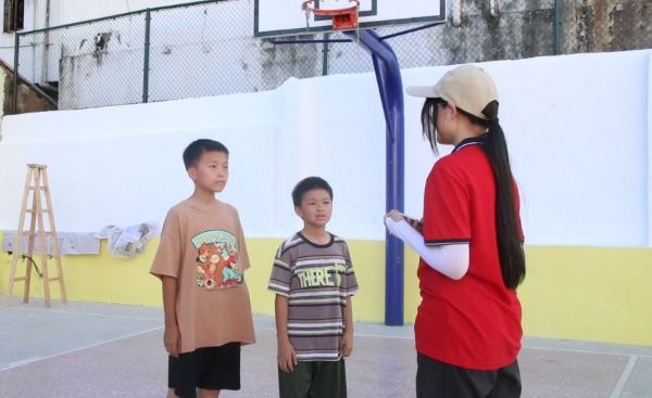 7月7日,在墙绘工作之余,突击队还对周边群众做出采访,积极听取当地民众的意见,其中,一群常在篮球场进行娱乐的小朋友们表示:“希望他们的篮球场能够色彩更丰富,更有生机。”同时还表达了想参与到此次墙绘活动中的意愿。在相互交谈中,突击队增进了与村民之间的感情,也感受到了这次活动所带来的价值,更激发了成员们的斗志,大家都希望通过自己的努力为当地村民以及小朋友们的生活中多增添一份色彩。在突击队队长李素莹的带领下,项目稳步进行。路虽远,行则将至;事虽难,做则必成。习近平总书记指出:“新征程是充满光荣和梦想的远征,没有捷径,唯有实干。”历史不会辜负实干者,青昭阳和实践队始终谨记这一点,用实际行动渲染青春,用脚踏实地追逐未来。