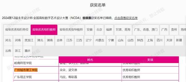 本网讯(记者 龚帅)8月12日,第12届未来设计师·全国高校数字艺术设计大赛(NCDA)省级赛奖项公布,我校机械工程学院/机器人工程学院、suncitygroup太阳新城、suncitygroup太阳新城等组织师生参赛,最终共斩获23项省级荣誉奖项,包括一等奖5项、二等奖7项和三等奖11项。此外,还获得了省级优秀组织单位奖、优秀组织教师奖、优秀指导教师奖,展示了我校在设计教育领域的突出实力。
