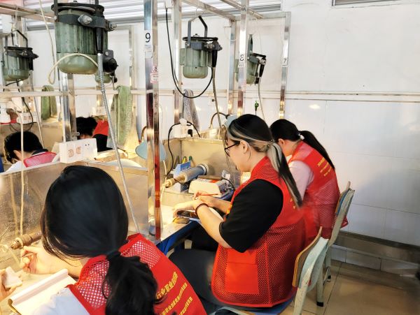 开幕仪式后,张珂院长一行参观了比赛现场,并与参赛选手、裁判员以及到场专家进行了亲切交流。他们细致地观察了作品的创作过程,对选手们的技术水平和创新能力给予了高度赞扬,并激励大家不断进取,为珠宝玉石雕刻领域的发展贡献力量。