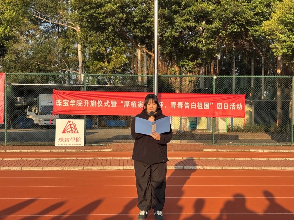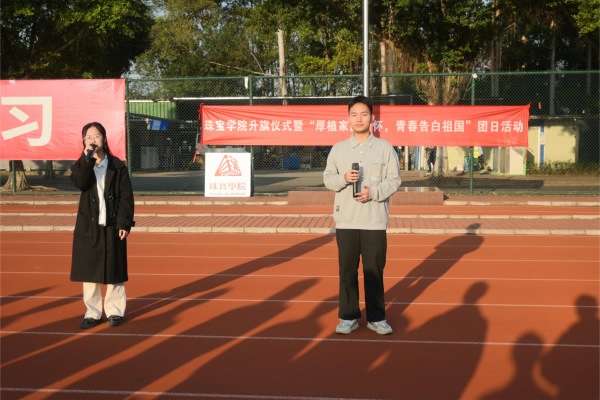 新发展党员代表谢彤同学进行国旗下的演讲,她强调新时代大学生应在校园探寻个人成长与国家命运的联系,将个人理想与国家前途进行融合,并呼吁大家珍惜大学四年的时光,提升自己的能力,为贡献国家与社会做好准备,用青春与热血展现青年力量。