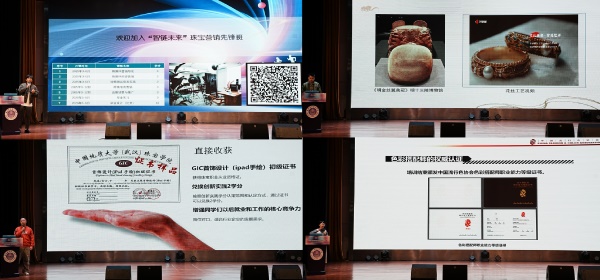 随后,宝石与材料教研室副主任剡晓旭为学生们介绍了产业学院、GIC宝石基础课程和NGTC钻石鉴定与分级课程,鼓励学生们积极尝试,夯实专业基础。此外,产品设计专业教师郭涛、解思伟、梁文思分别介绍了非遗滑丝镶嵌工艺课程、GIC(iPad手绘)初级证书课程和色彩搭配师课程,为学生们提升专业水平提供了平台。