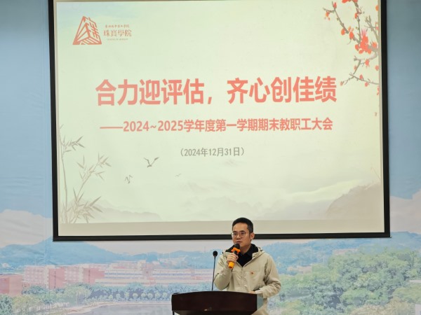 会上,张珂回顾了2024年学院取得的各项成绩,并指出现阶段学院发展的工作重点。一是配合学校进一步做好本科合格评估各项工作;二是推动产业学院的进一步建设发展,紧密联系企业,共同培养学生;三是希望学院教师鼓励学生积极考证,拓展学生就业能力;四是结合学院特色,推动文创设计工作进一步的发展。同时,也希望教师积极参与到学院的各项活动中去,共同推动学院发展。