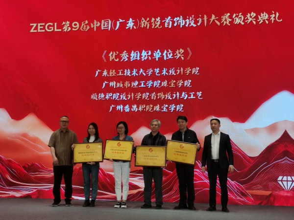 张珂院长受邀作为高校代表,与行业协会领导、企业负责人共同启动了“每颗心”ZEGL第十届中国广东新锐首饰设计大赛及首届中国嘻哈珠宝设计大赛,并荣获“优秀组织单位奖”。我校在赛事组织和人才培养方面获得了行业及协会的高度认可。