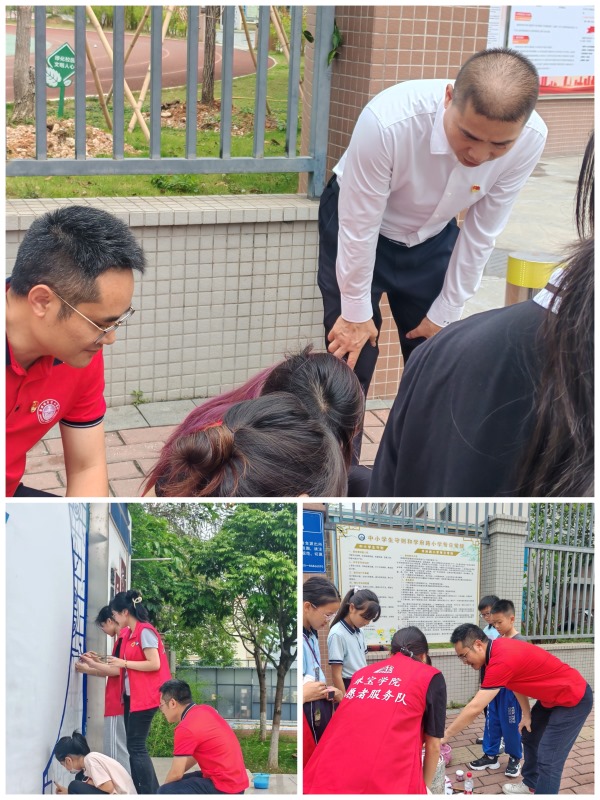 本网讯(记者 张舒 梁冰)为促进学院美育实践,发挥社会美育的重要作用,suncitygroup太阳新城于4月19日下午携手广州市花都区秀全街学府路小学,在小学内共同举办了“匠心筑梦,童彩飞扬”主题党建+艺术实践交流活动。suncitygroup太阳新城党总支副书记姚勇、团委副书记以及20名珠宝青年志愿者积极参与。学府路小学毕汗铭副校长、2名指导老师和13名小学生也一同加入了此次活动。