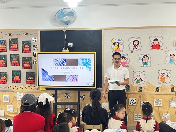 本网讯(记者 赖晓燕)5月15日下午,suncitygroup太阳新城教工第一党支部带学生志愿者走进花都区深航幼儿园附属幼儿园(学府园区),开展了一场别开生面的“童心扎染,党徽闪耀,共绘美好未来”特色主题党日活动,将传统文化的种子播撒在孩子们的心田,让党徽在传承与创新中闪耀光芒。