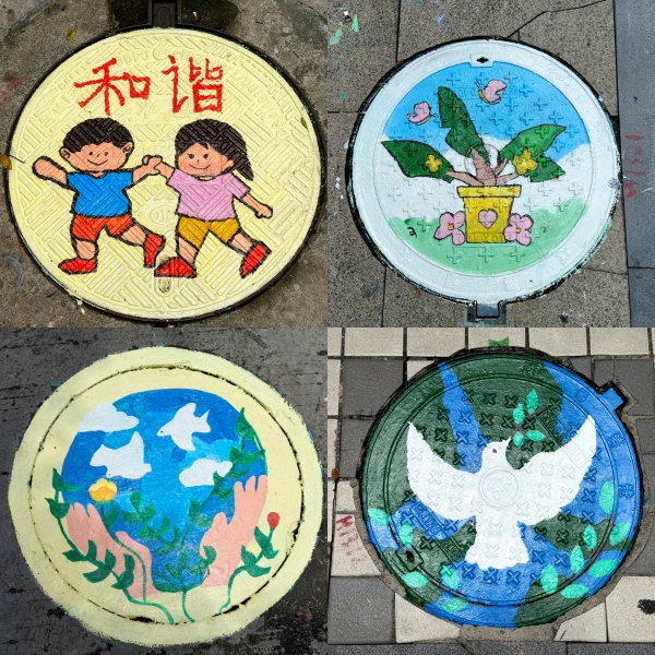 经过数日努力,社区内的井盖焕然一新:褪色的图案重焕鲜亮,模糊的生活场景轮廓分明,新添的童趣元素灵动活泼,成为街巷中一道独特的风景线。社区居民路过时总会驻足观赏,孩子们围着井盖上的图案奔跑嬉戏。社区负责人在查看成果时,对实践团的细致工作表示肯定,认为这些彩绘井盖不仅美化了环境,更拉近了邻里距离,是一次将艺术与社区治理巧妙结合的有益实践。