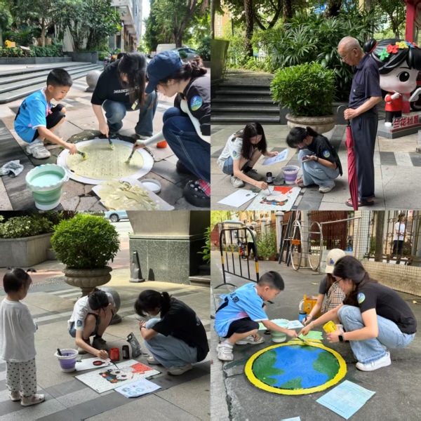 活动开展期间,向阳绘画实践团成员与兰花社区居民的互动交流,构筑起一幅温情和谐的画面。实践团队员携绘画工具进入社区后,迅速吸引居民驻足关注。少年儿童满怀好奇地围拢在侧,或主动递送画笔,或积极建言创意构想,部分孩子更是在实践团队员的专业指导下,亲手参与井盖彩绘,体验创作乐趣;社区老年居民则搬来座椅,静看原本单一色调的井盖渐变为生动鲜活的卡通、风景图案,不时颔首称赞,整个社区充盈着共建共享的融洽氛围。