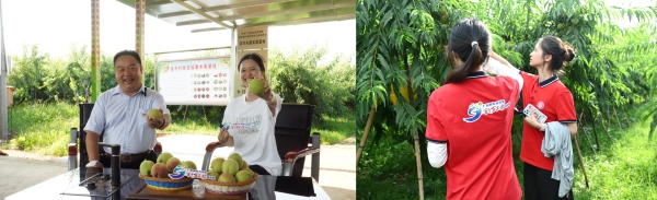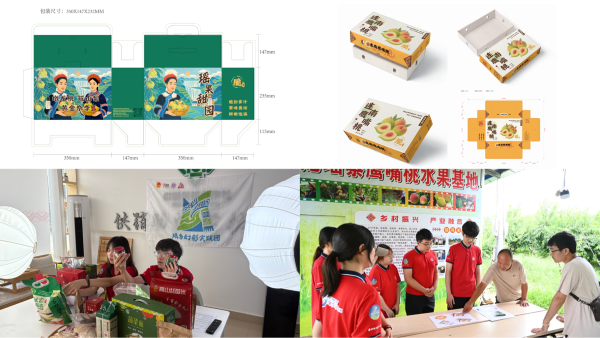 在墩龙瑶寨水果基地,实践团深入田间地头,调研当地鹰嘴桃等特色农产品的种植、销售情况,在与连水村党总支书记唐亚木贵的采访中,实践团成员探讨了鹰嘴桃的产业优势及线上线下销售体系的建设痛点。针对提升农产品附加值、拓宽销路的核心需求,实践团成员为农产品制作了两款专属包装,以专业优势提升产品附加值和农产品市场竞争力。实践团还为墩龙瑶寨水果基地拍摄了开园预热视频,视频通过“连南发布”微信公众号发布,有效扩大了基地的知名度和影响力,为开园活动起到了良好的宣传引流作用。此外,成员们还化身“带货主播”,通过直播镜头向网友推介连南特色农产品,讲述瑶乡故事,助力农产品“出村进城”。这场直播不仅拓宽了销售渠道,更是一次“互联网+农业”的创新实践。