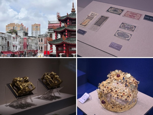 在漫步于街区时,实践团目睹了屋脊上精致的嵌瓷、木雕以及石雕柱础,这些无处不在的元素生动地展现了传统工艺与历史建筑的完美融合,深刻阐释了“传承不守旧,创新不离根”的文化发展哲学。午后,实践团前往臻宝博物馆,参观了馆内珍藏的丰富展品。博物馆内的展览琳琅满目,从非物质文化遗产工艺的精细展示到艺术藏品的独有魅力,每一件展品都承载着丰富的文化底蕴。特别是那些融合了传统美学的老银饰和玉石镶嵌作品,它们精细的纹饰、材质的巧妙搭配以及对吉祥寓意的精练表达,都给实践团留下了深刻印象。这些珠宝设计中对文化符号的巧妙运用和对光泽质感的精确掌握,为实践团提供了创作灵感,为即将进行的华文社区“华菁合唱团”胸针设计积累了丰富的素材。潮汕文化博览中心的展览让我们实践团深刻体会到“文化自信是更为根本、深远、持久的力量”。最后,实践团步入飞鱼风筝馆,各式灵动的风筝承载着海洋文化记忆。图文展板详细介绍了竹篾扎架、糊纸彩绘的工艺,“飞鱼”造型源自渔民生活观察,既保留“年年有余”的传统寓意,又通过现代设计让风筝更易升空,诠释着“创新不离根”的智慧。