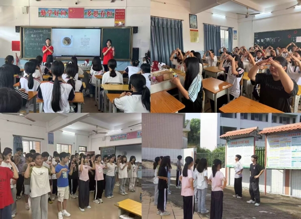 实践团将红色教育贯穿支教全过程,以多元形式厚植爱党爱国情怀。在红色系列活动中,有红歌《没有共产党就没有新中国》、《保卫黄河》等、庄严升旗仪式、鉴赏红色影视《长津湖之水门桥》等,实践团通过不同形式与体验,激发同学们对民族复兴的坚定信念,让感恩之心与红色情怀相互交融、相得益彰。把丰富多样的活动带进课堂,引导孩子们深刻感悟爱党爱国情怀,让红色信仰深深扎根于童心,更激励着同学们在成长路上砥砺前行。实践团还创新性地将感恩教育融入其中,教授手势舞《听我说谢谢你》,孩子们用灵动的指尖舞动,生动演绎出“用红色基因传承,用爱心种子破土”的温暖意象,并自发向志愿者比出爱心,实现了红色传承与感恩教育的深度融合,让红色基因在孩子们心中生根发芽。