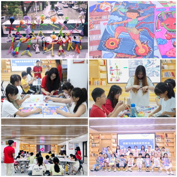 基于前期调研成果,实践团于华文社区组织开展了一系列实践活动。在AI非遗美育课程中,实践团以嵌瓷、英歌舞等非遗项目为核心载体,通过“理论讲解+互动创作+科技赋能”的三维教学模式,生动阐释非遗项目的历史渊源与艺术精髓。课程引导青少年以非遗元素为灵感,设计平面绘画与立体手工制品,并创新转化为钥匙扣、冰箱贴等生活化文创产品,实现“非遗技艺—创意设计—生活应用”的转化链条。课程尾声的AR互动环节,运用人工智能技术将静态作品转化为动态影像,通过虚实融合的沉浸式体验,使非遗文化以科技化、趣味化的形式融入日常生活场景,有效提升了青少年对传统文化的认同感与传承意识。