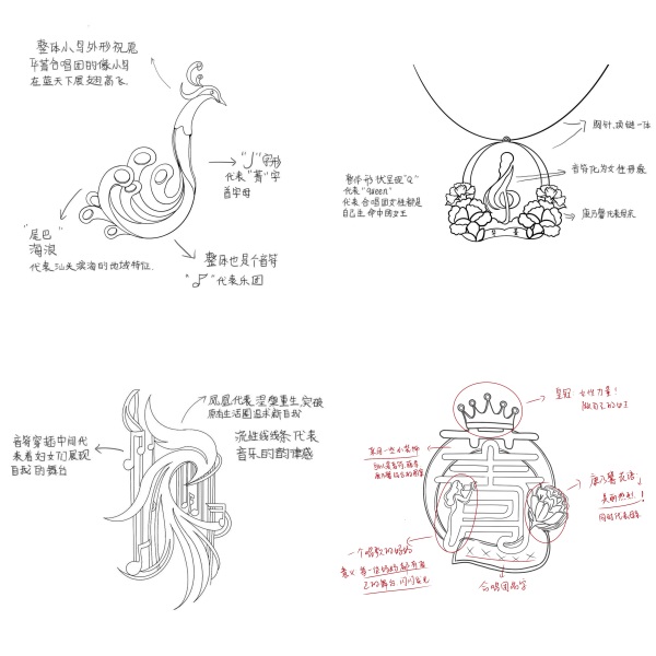 胸针设计初稿(张文馨 刘洁瑜 李彤 供)