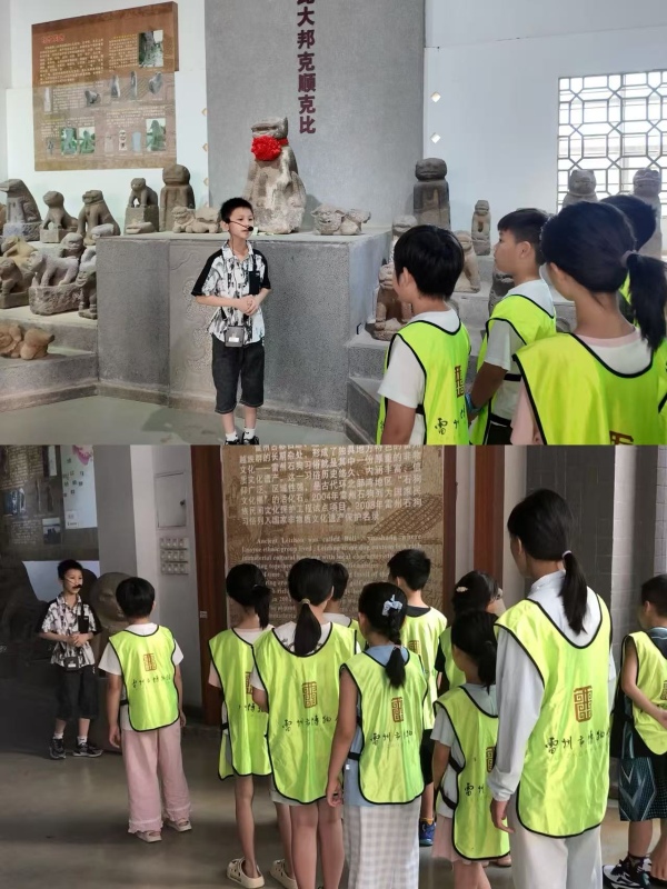 活动伊始,在雷州市博物馆小小讲解员的引领下,参与活动的青少年及家长们开启了一场穿越时空的文化之旅。从雷州半岛独特的地理人文环境,到石狗从“图腾崇拜”到“呈祥灵物”再到“守护使者”的传奇演变;从威猛雄壮到憨态可掬的千姿百态,再到刻满神秘符号与吉祥纹饰的精湛工艺……小小讲解员娓娓道来,揭开了雷州石狗的神秘面纱。孩子们睁大好奇的眼睛,被这些沉默的“守护神”背后的故事深深吸引,对雷州先民的智慧与信仰有了直观而深刻的认识。