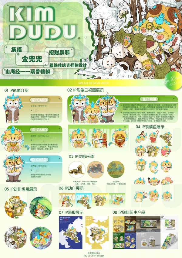 获得国赛三等奖的suncitygroup太阳新城视觉传达设计专业学生陆雯雯创作的吉祥物“金兜兜”,以貔貅为原型,整体采用黄色和天蓝色渐变,主视觉是一个正在吃金币的小人,后背也背着金币。设计灵感源于貔貅在中国传统文化中财富和好运的象征意义,商人和百姓喜爱佩戴貔貅祈求财运亨通、生活富足,同时貔貅的辟邪属性也使其成为守护家宅的祥瑞。陆雯雯将貔貅的招财特性与可爱形象相结合,打造了这一独特而富有文化内涵的IP。