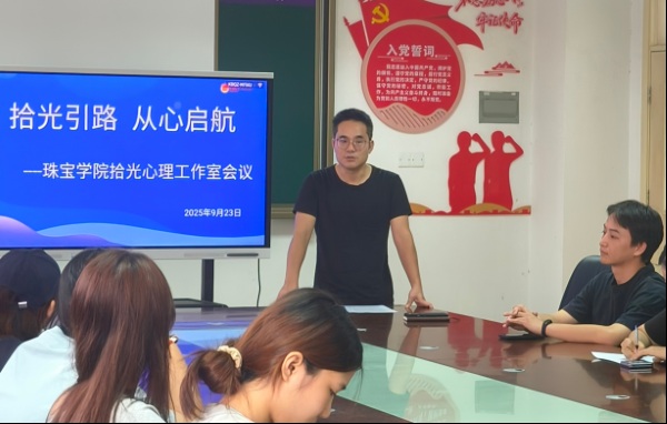 随后,学工办副主任梁冰围绕“如何成为合格的心理服务者”展开务实而细致的分享。她提醒成员们要敏锐关注身边同学的心理状态,尤其是北方同学初到南方的适应问题、季节更替时的情绪波动、学业与就业带来的压力等常见问题。梁老师鼓励大家持续学习专业知识,积极参与心理活动策划,主动推荐有需要的同学参与心理疗愈体验,让温暖流动起来。她也强调,每位成员都应认真履行每月推文撰写、定期参与培训的职责,共同推动工作室服务提质增效。