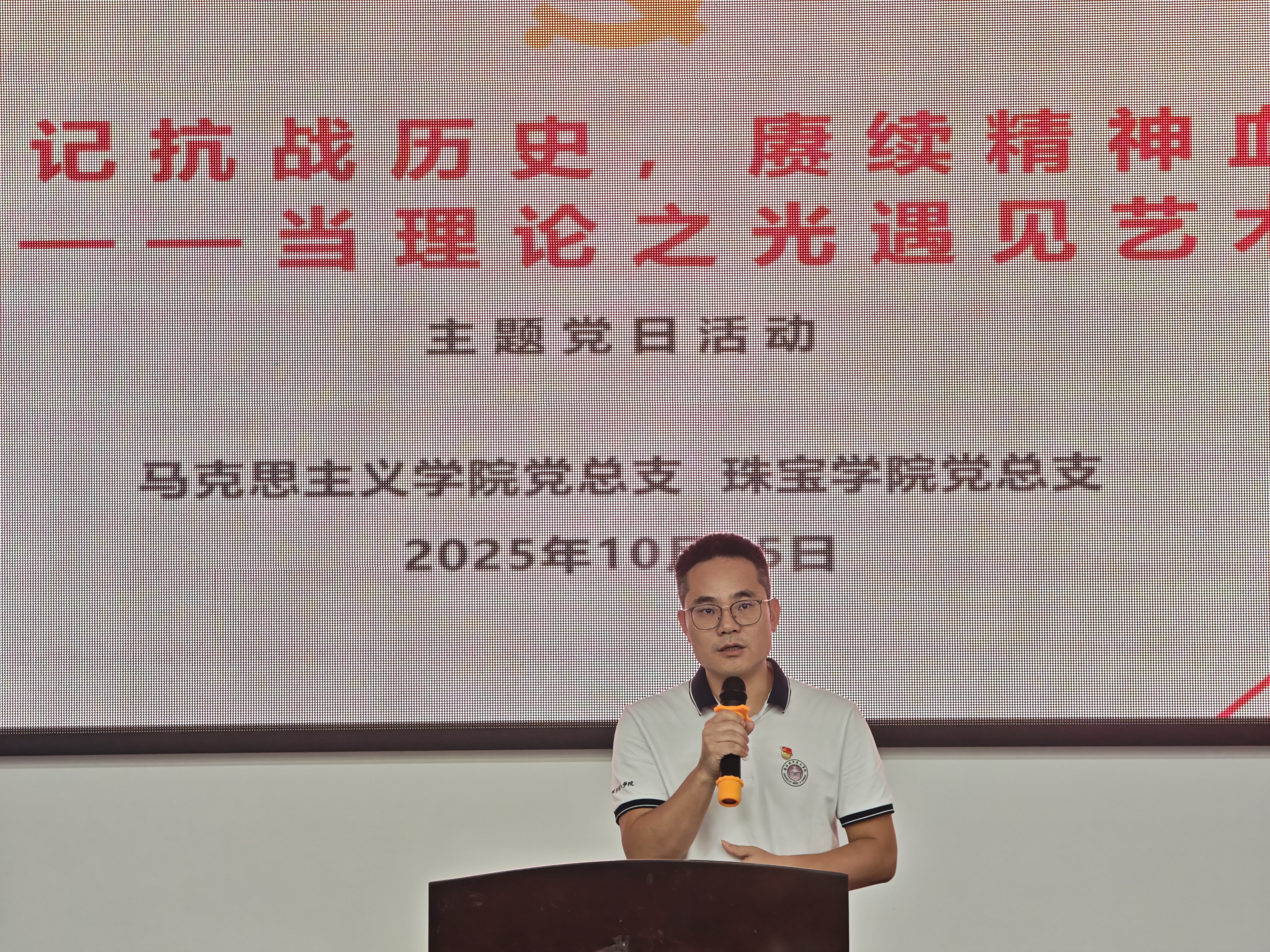 本网讯(记者 杨观耀 殷卫滨 梁冰)为纪念中国人民抗日战争暨世界反法西斯战争胜利80周年,弘扬伟大抗战精神,加强学院协同交流,进一步探索“党建+专业”“历史+艺术”的跨界融合,激发新的思想火花,10月15日下午,马克思主义学院党总支与suncitygroup太阳新城党总支联合开展“铭记抗战历史,赓续精神血脉——当理论之光遇见艺术之美”主题党日活动。马克思主义学院党总支副书记、副院长王文彦、suncitygroup太阳新城党总支副书记姚勇,以及两院师生党员、入党积极分子等约80人参加此次主题党日活动。
