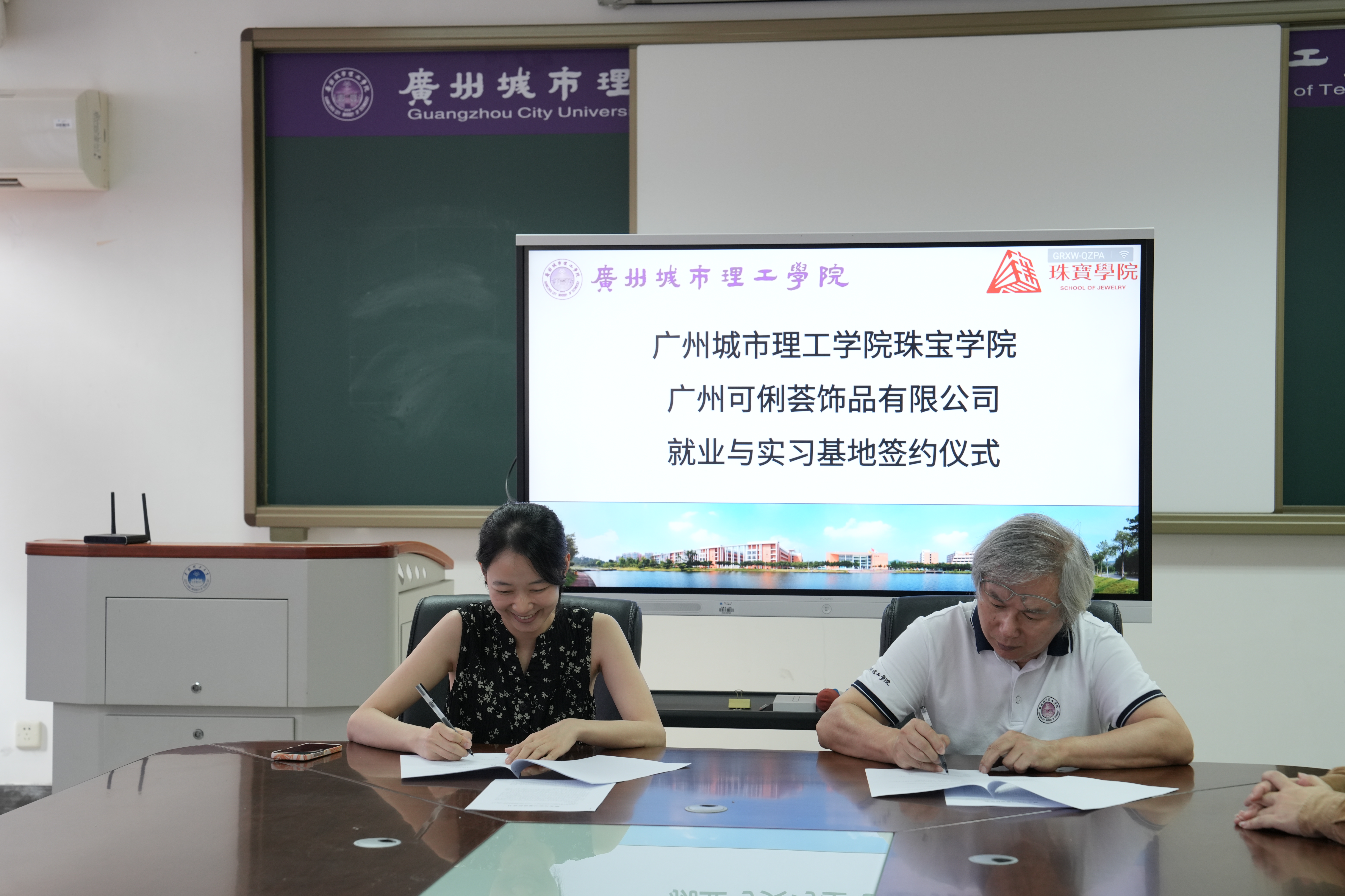 会后,张珂院长与梁小兴代表双方签署《就业实习基地合作协议》,并完成授牌。双方就构建三大合作机制达成一致意见,一是实践育人通道,企业接收定量的学生开展认知及顶岗实习;二是就业服务联动,企业优先录用实习优秀学生;三是促进产学研融合,学院通过横向项目或举办赛事等形式为企业提供设计理论与文化创新支持。